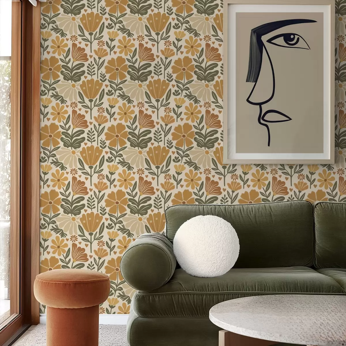Tapeta Štylizované kvety v teplých tónoch so srdcami Nr. a00752
