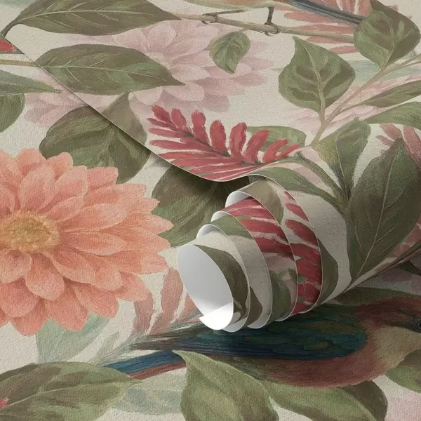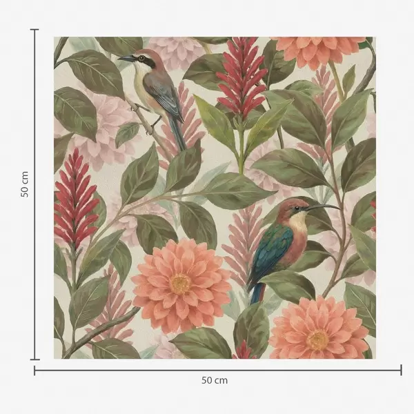 Tapeta Vtáky medzi kvetmi a listami v teplých tónoch Nr. a00753