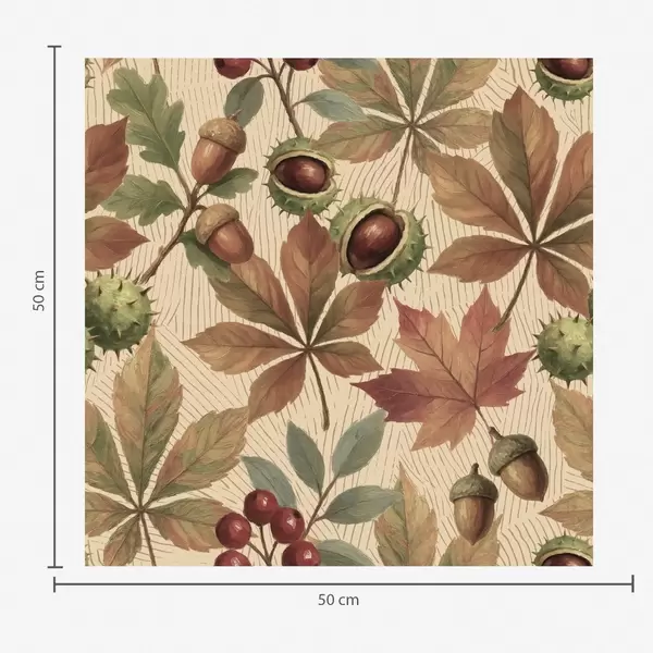 Tapeta Jesenné lístie, žalude a bobule na béžovom pozadí Nr. a00754