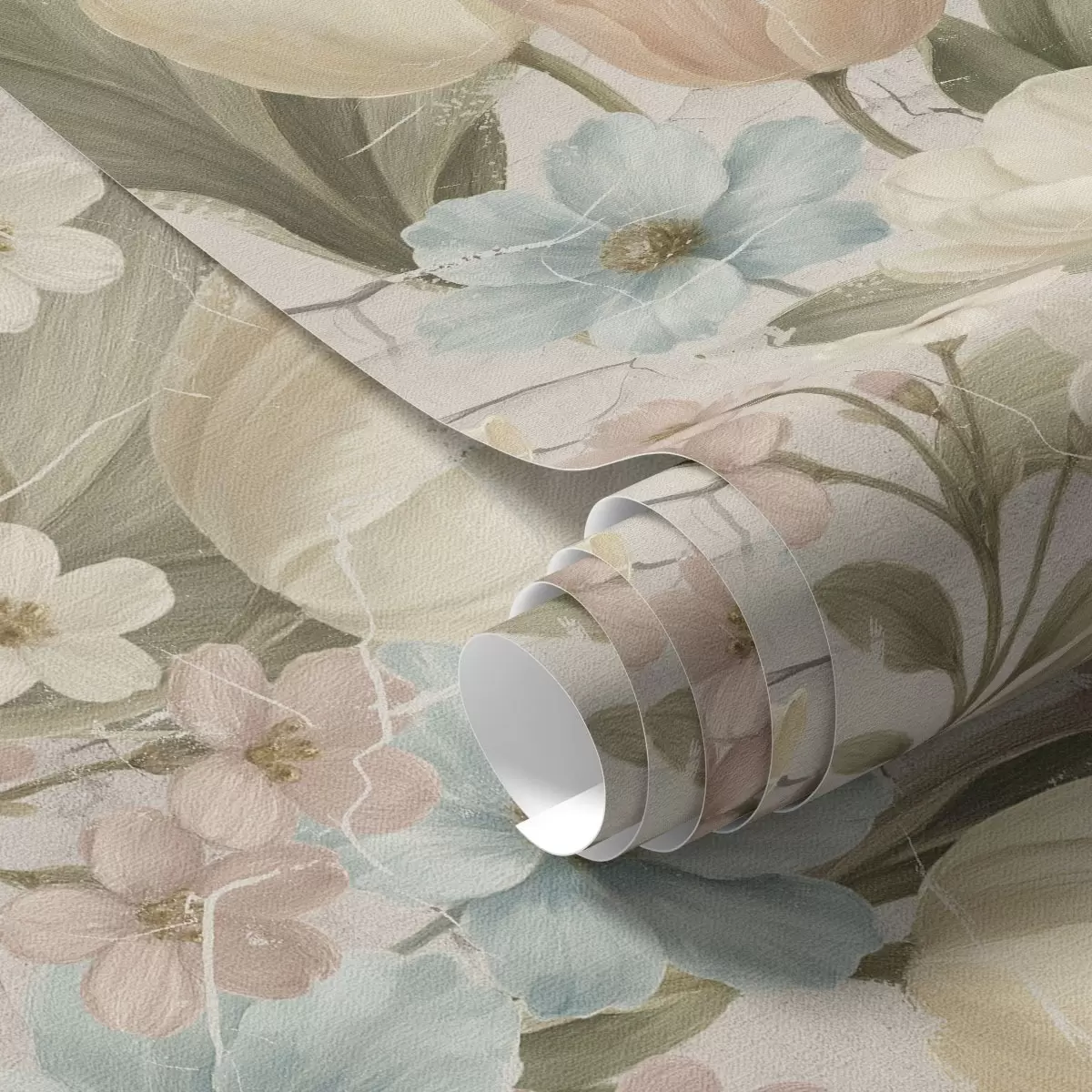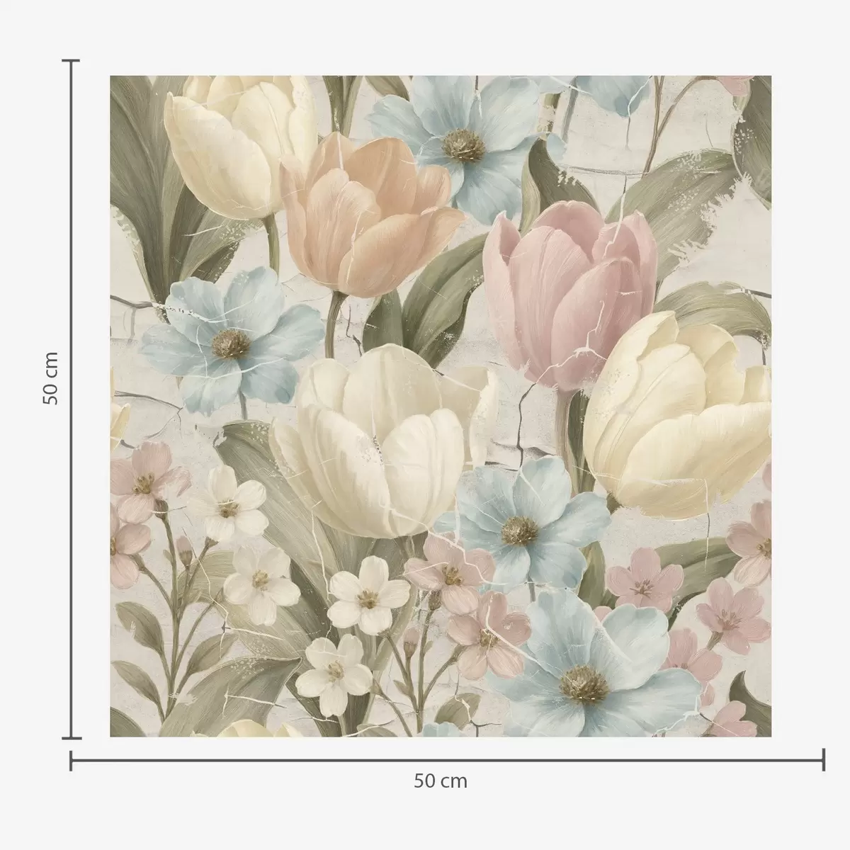 Tapeta Pastelové tulipány a kvety na svetlom popraskanom pozadí Nr. a00756