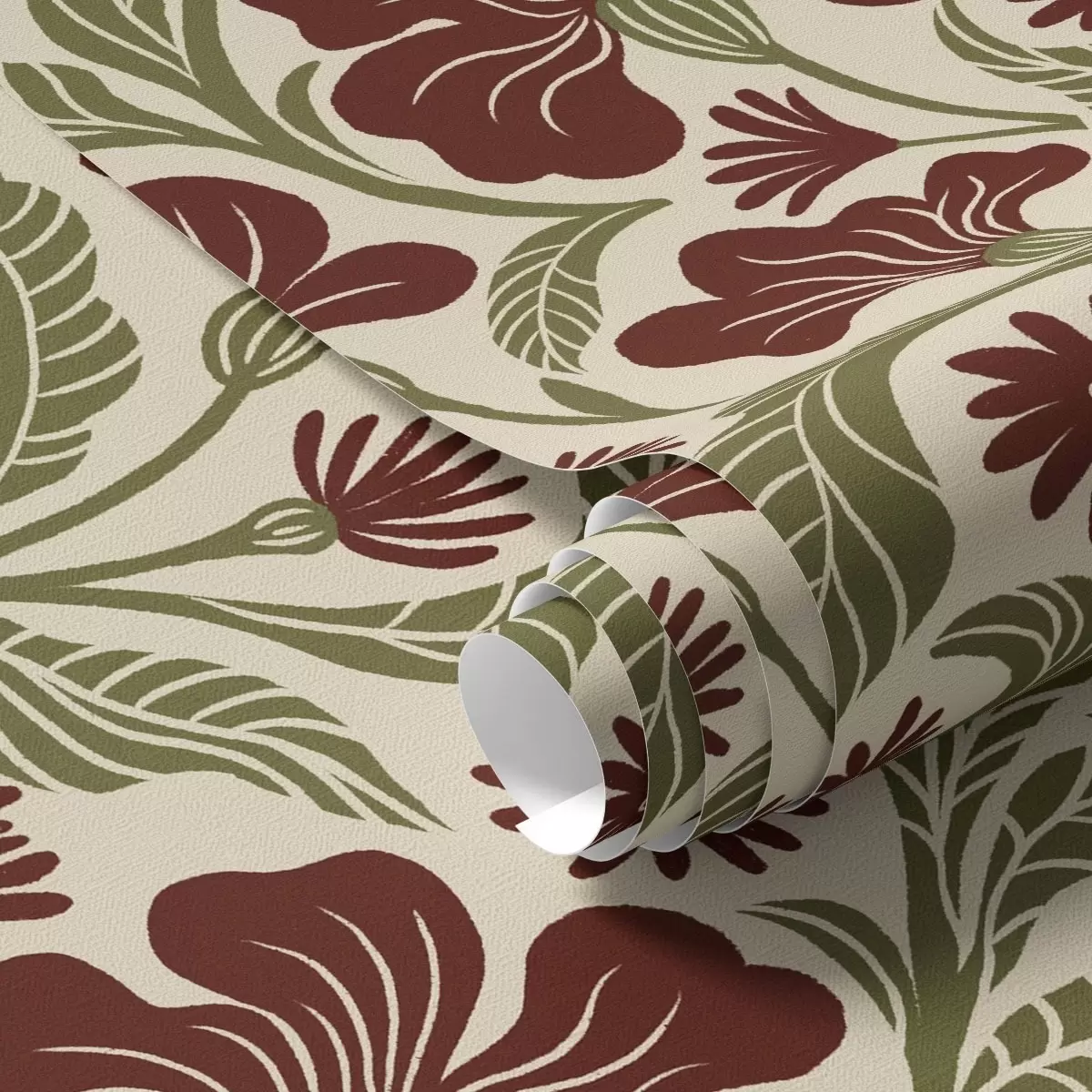 Tapeta Burgundské kvety so zelenými listami na svetlom pozadí Nr. a00761