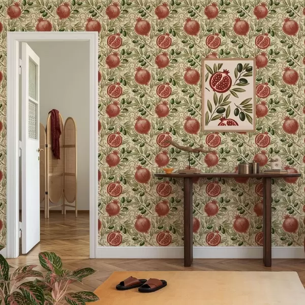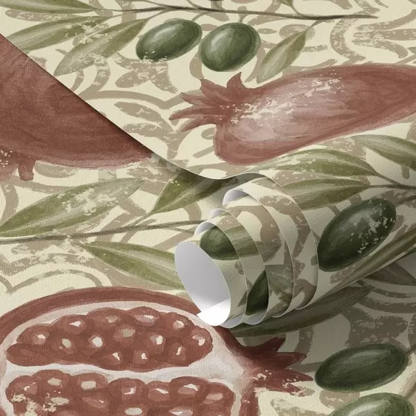 Tapeta Granátové jablko a olivové ratolesť na ozdobnom pozadí Nr. a00764