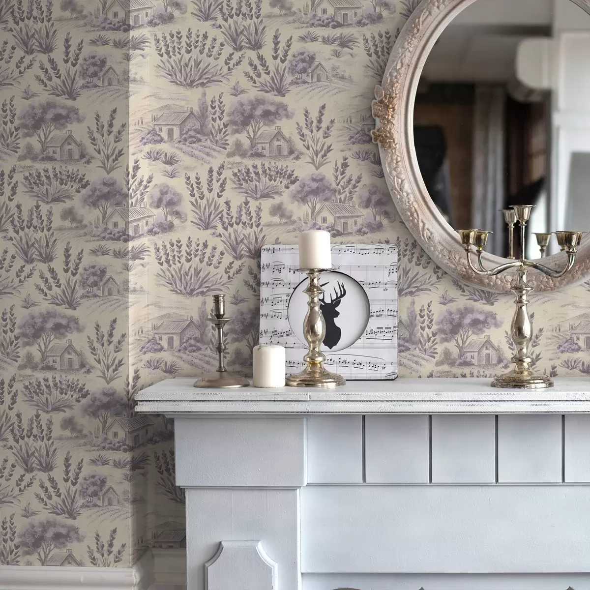 Tapeta Levanduľové polia a domy v pastelových odtieňoch Nr. a00765