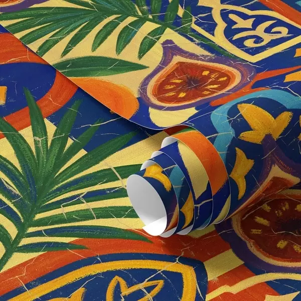 Tapeta Svetlé pomaranče, palmové listy a marocké oblúky Nr. a00767