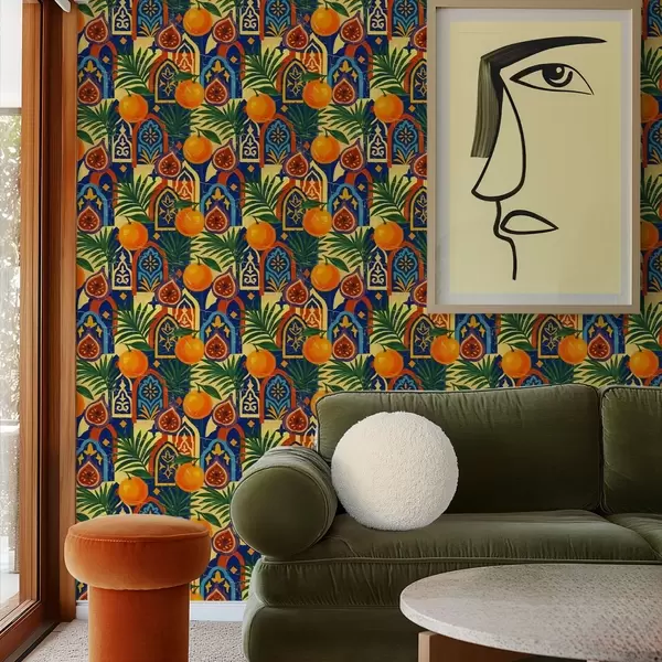 Tapeta Svetlé pomaranče, palmové listy a marocké oblúky Nr. a00767