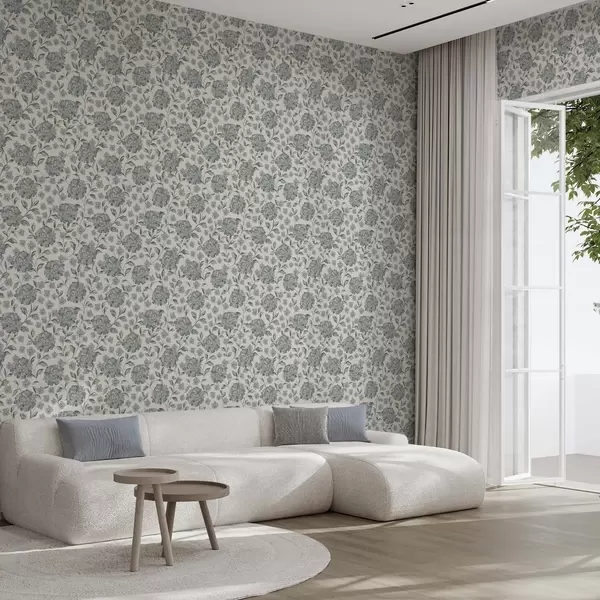 Tapeta Kvetiny a listy v sivomodrej farebnej palete Nr. a00778