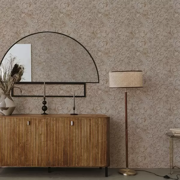 Tapeta Kamenný reliéf s kvetinovými ornamentmi, vintage béžová farba Nr. a00784