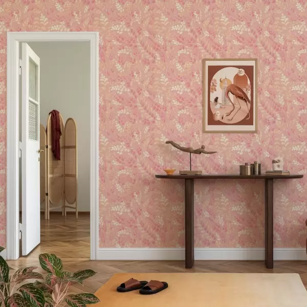 Tapeta Jemné ružovo-broskyňové listy s jemným farebným leskom Nr. a00799