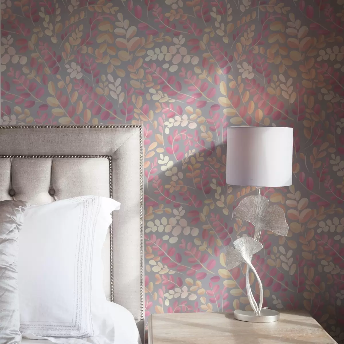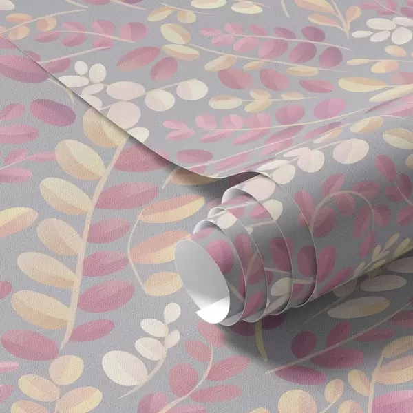 Tapeta Pastelové vetvy s ružovo-broskyňovým lístím na sivom pozadí Nr. a00799v1