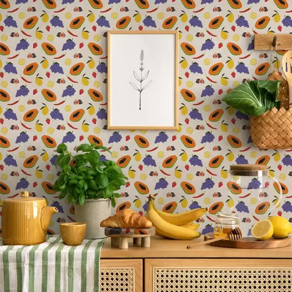 Tapeta Papája, hrozno a citróny — svieža ovocná zmes Nr. a00803