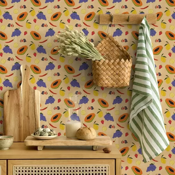 Tapeta Papája, citrusy a bobule na bohatom teplom pozadí Nr. a00803v1