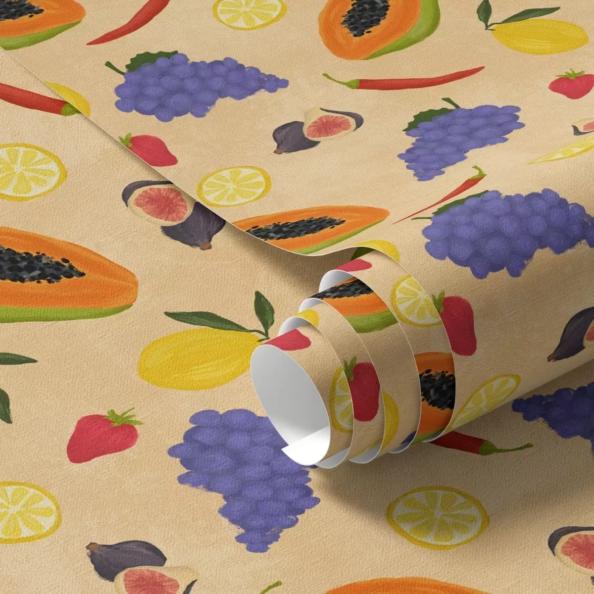 Tapeta Papája, citrusy a bobule na bohatom teplom pozadí Nr. a00803v1
