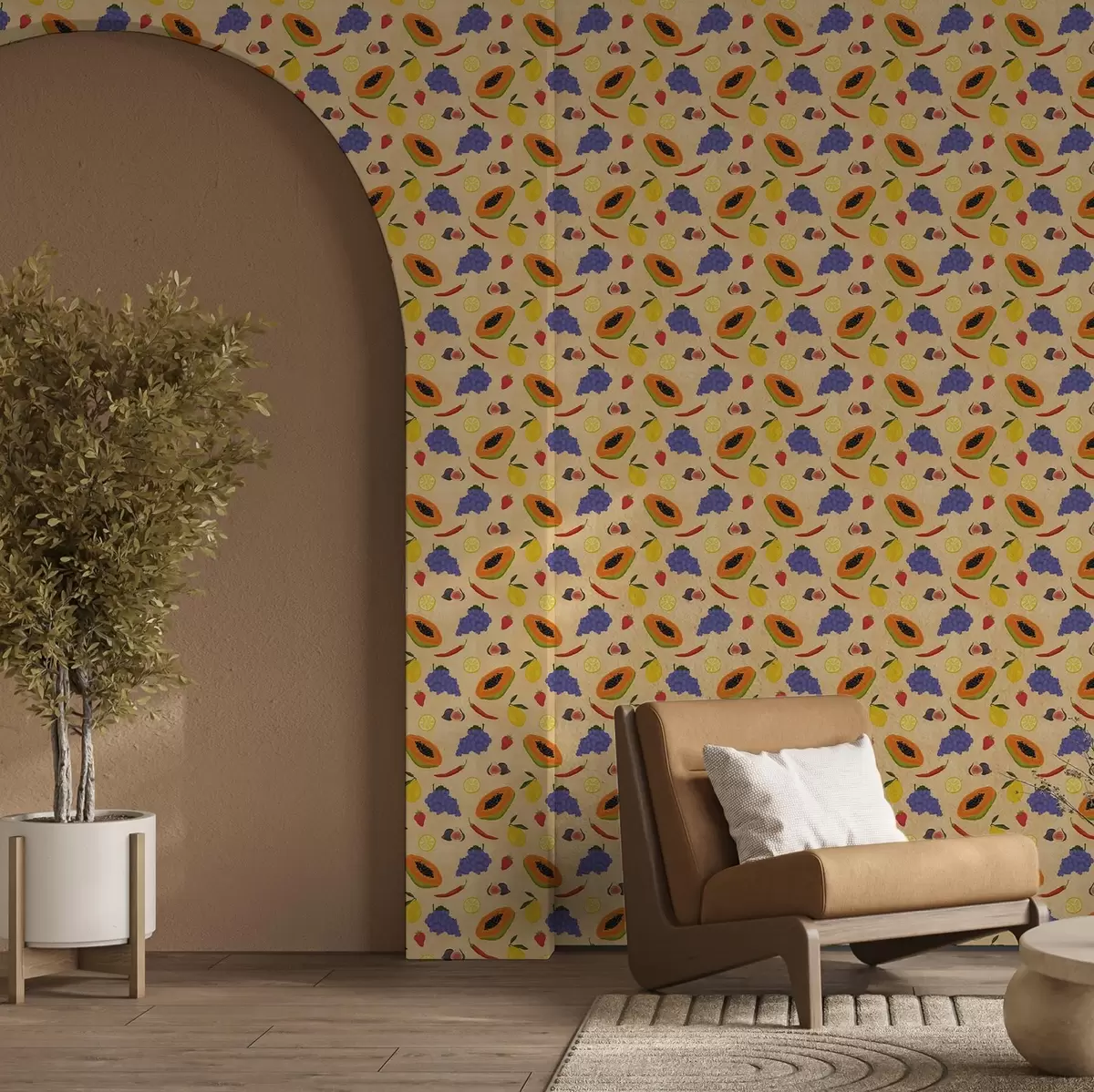 Tapeta Papája, citrusy a bobule na bohatom teplom pozadí Nr. a00803v1