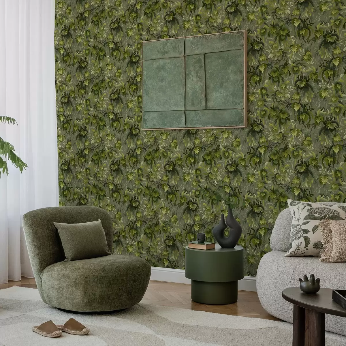 Tapeta Husté zelené lístie na šedo-zelenom pozadí Nr. a00805v1