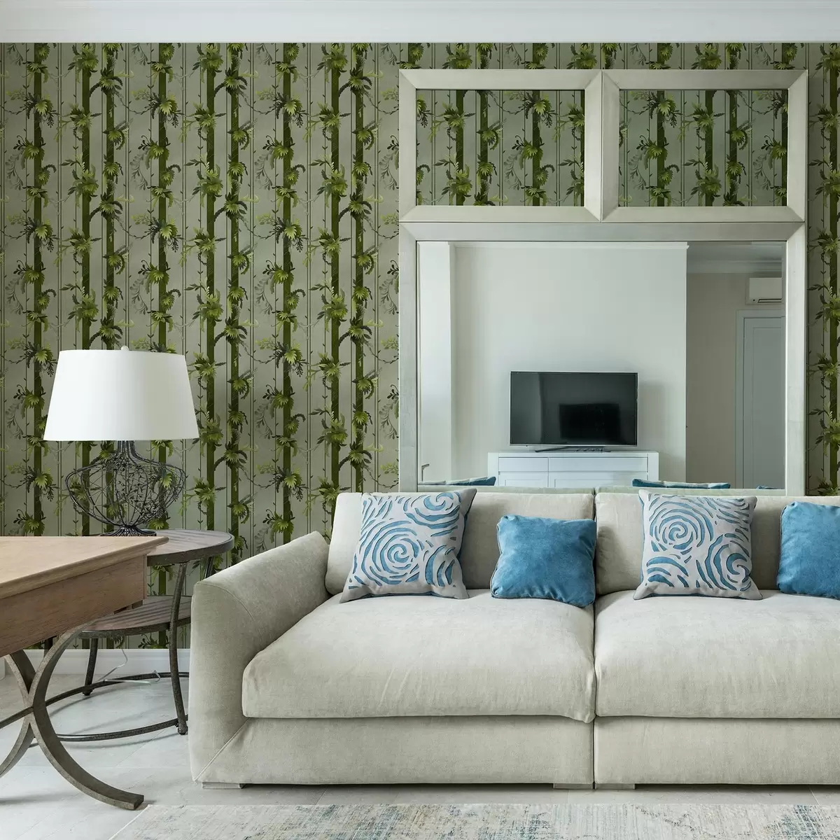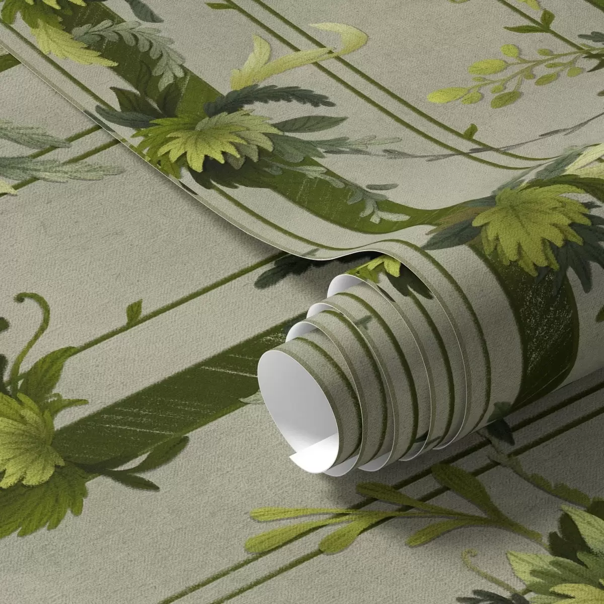 Tapeta Zelené listy vo vertikálnych pruhoch na sivom pozadí Nr. a00807v1