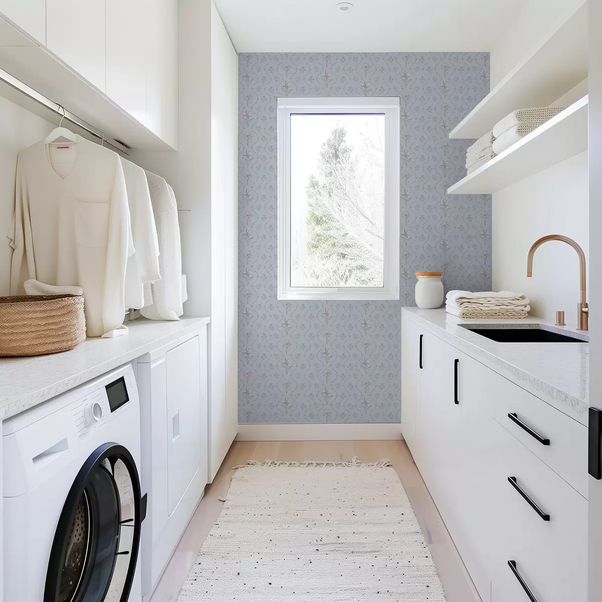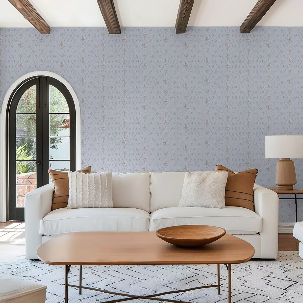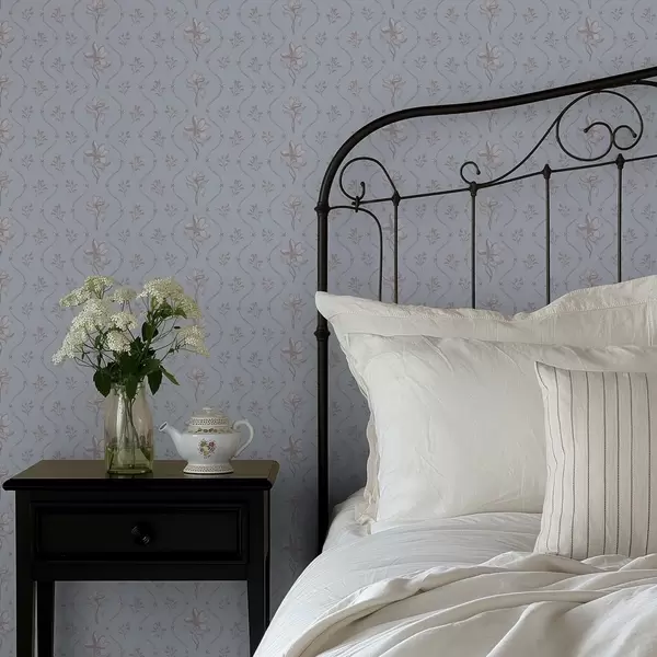 Tapeta Malé kvety a stužky v bledomodrých odtieňoch Nr. a00808v1