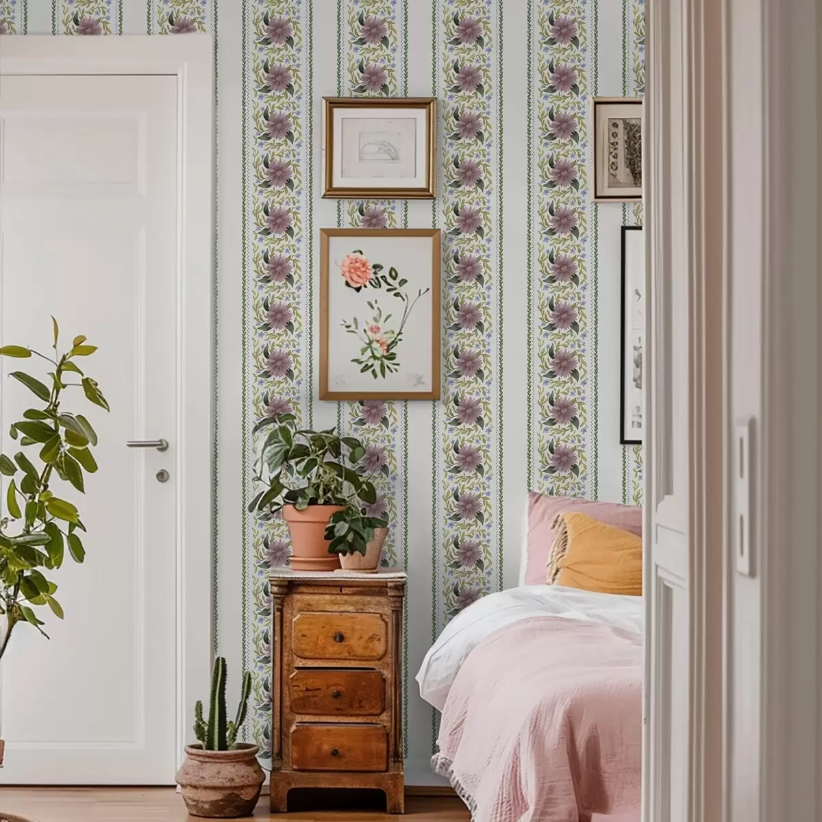 Tapeta Vertikálne kvetinové pruhy v lila-modrých odtieňoch Nr. a00809