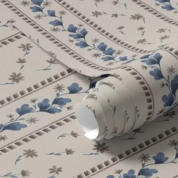 Tapeta Vertikálne kvetinové pruhy v modro-hnedých odtieňoch Nr. a00811v3