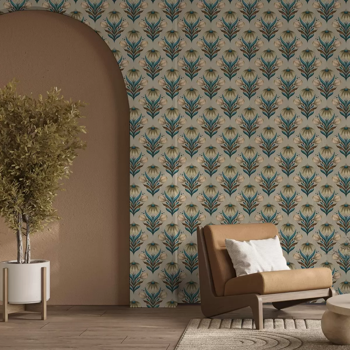 Tapeta Symetrický kvetinový ornament v teplých tónoch Nr. a00812