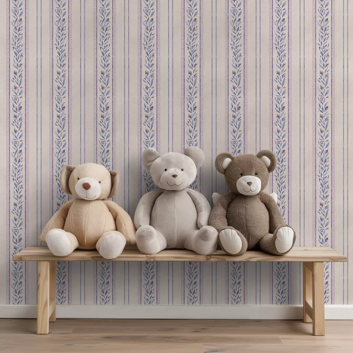 Tapety Vertikálne pruhy s levanduľovými vinetami, teplá béžová farba a00813