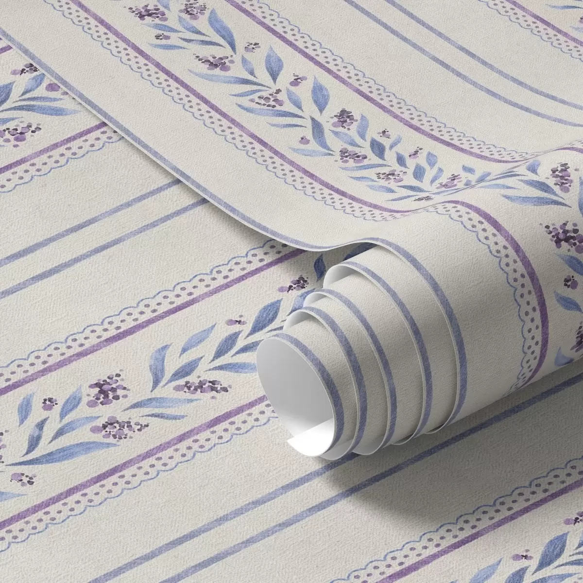Tapeta Vertikálne pruhy s levanduľovými girlandami, béžové pozadie Nr. a00813v1