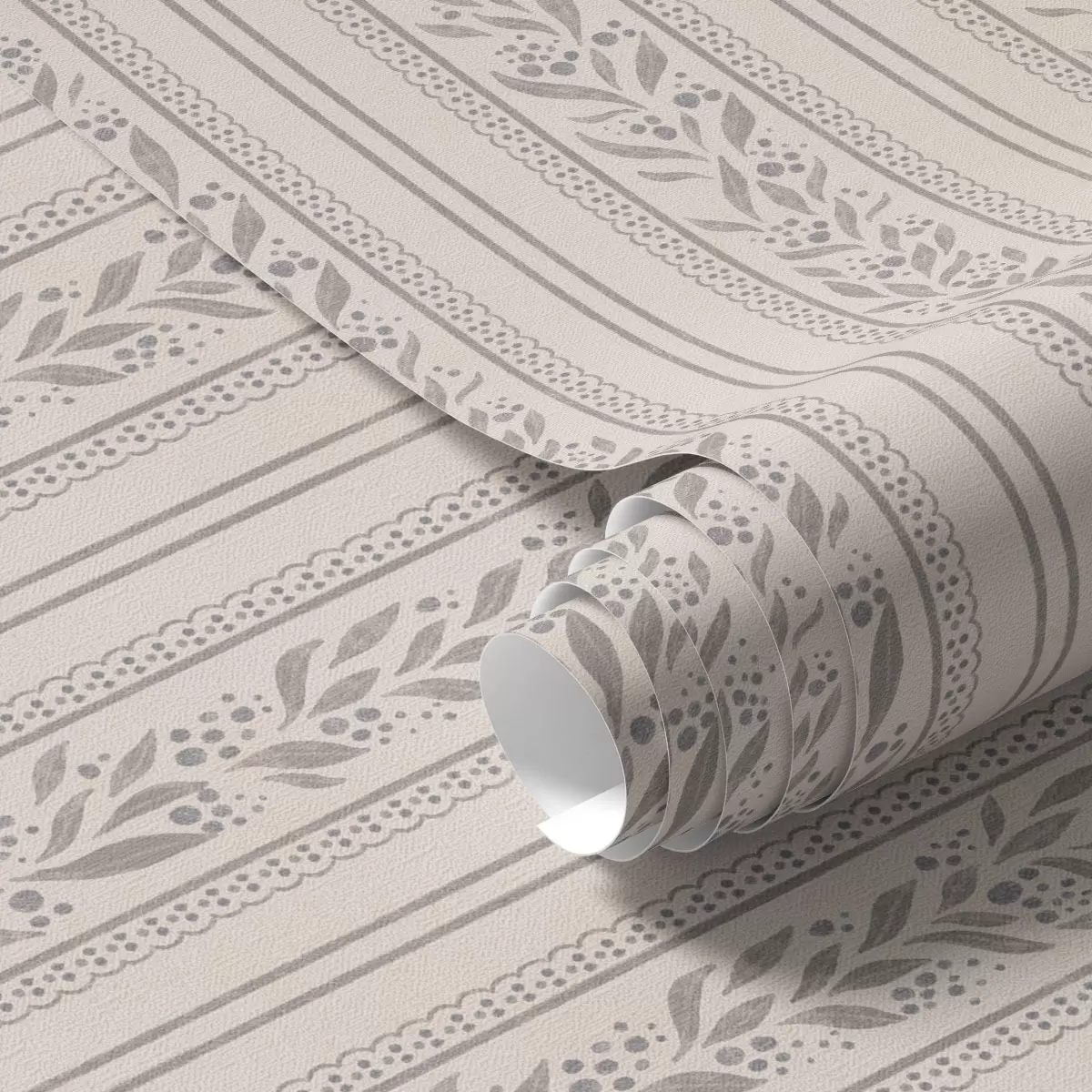 Tapeta Pruhy s čipkou a šedo-béžovými vetvičkami Nr. a00814