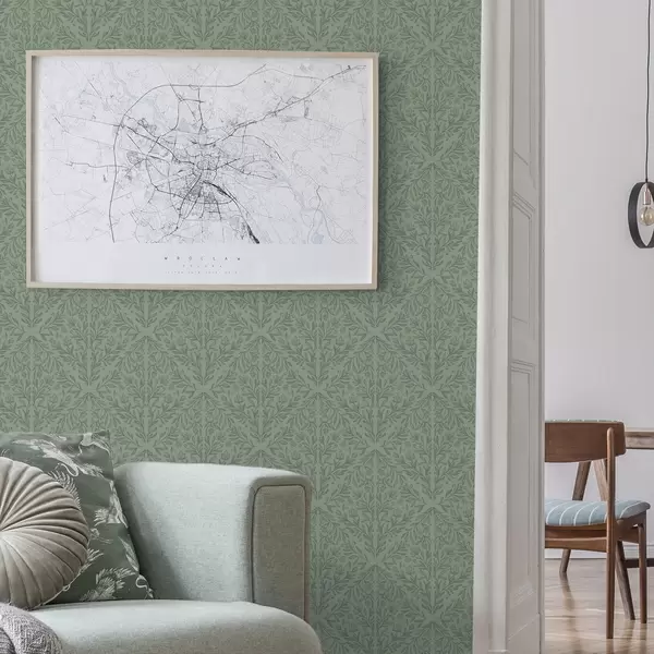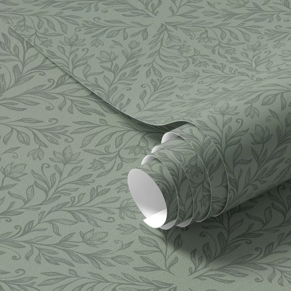 Tapeta Jemný botanický damašek v tlmených zelených odtieňoch Nr. a00815v1