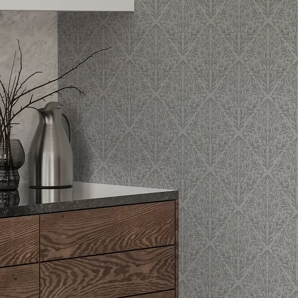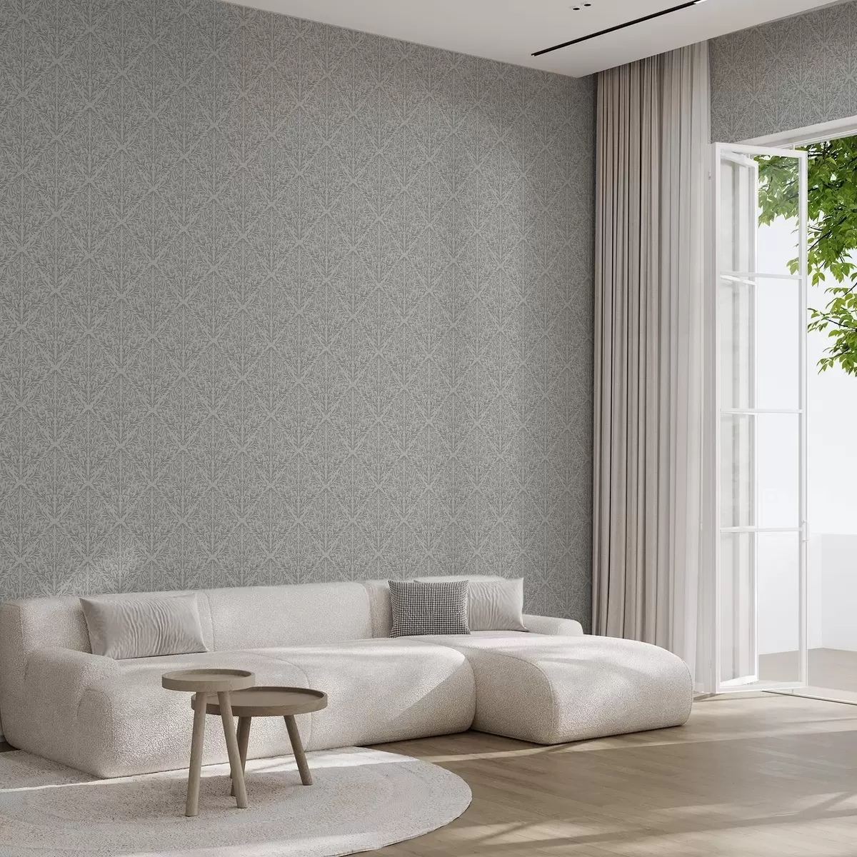 Tapeta Botanický damašek v svetlošedej farbe s jemným obrysom Nr. a00815v2
