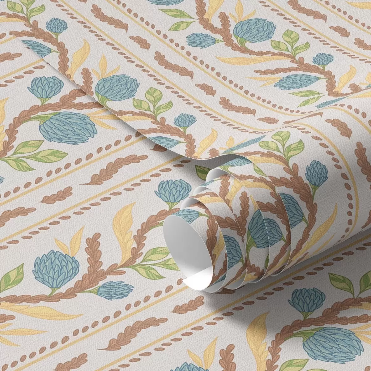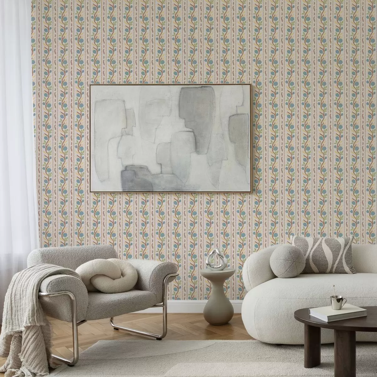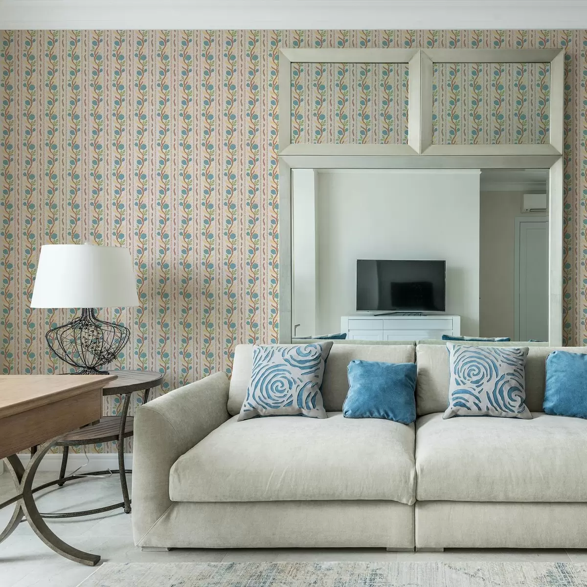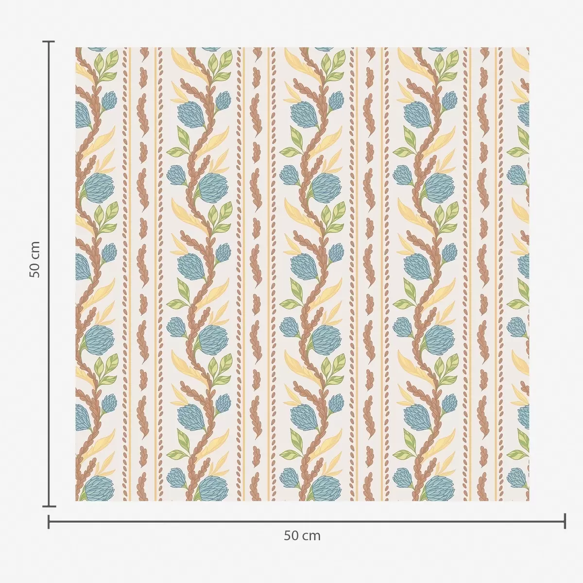 Tapeta Vertikálne pruhy s modrými kvetmi na teplom pozadí Nr. a00816v3