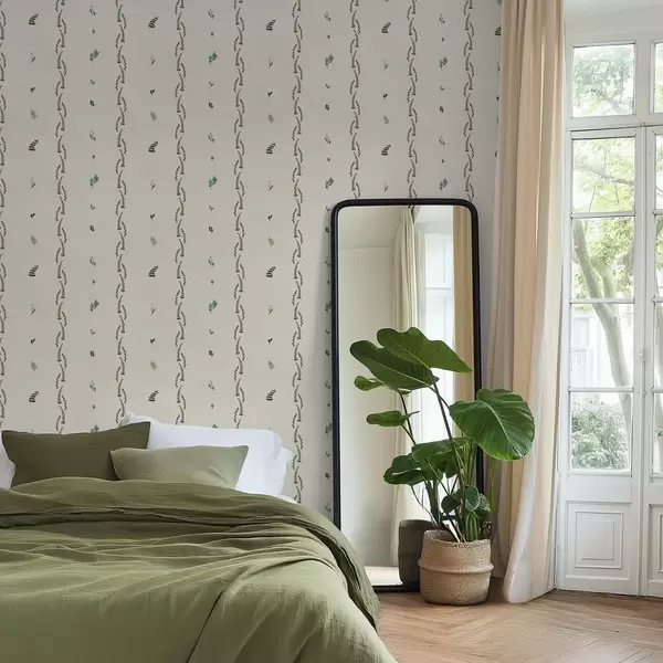 Tapeta Riedke zelené výhonky vo vertikálnom rytme, krémová podložka Nr. a00818