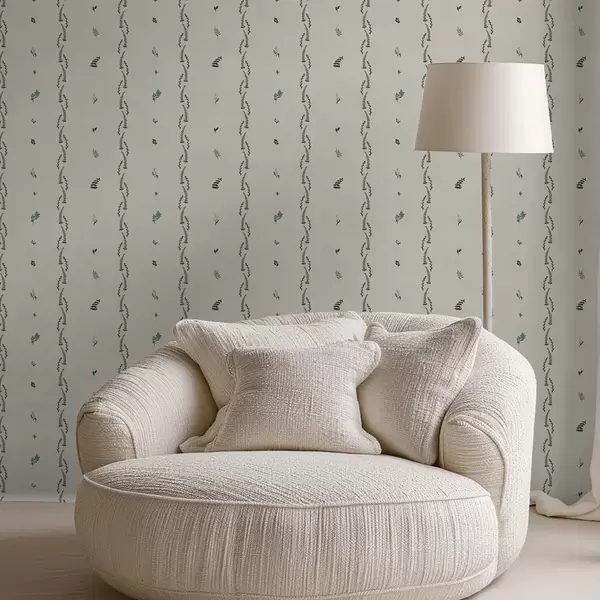 Tapeta Riedke zelené výhonky vo vertikálnom rytme, krémová podložka Nr. a00818