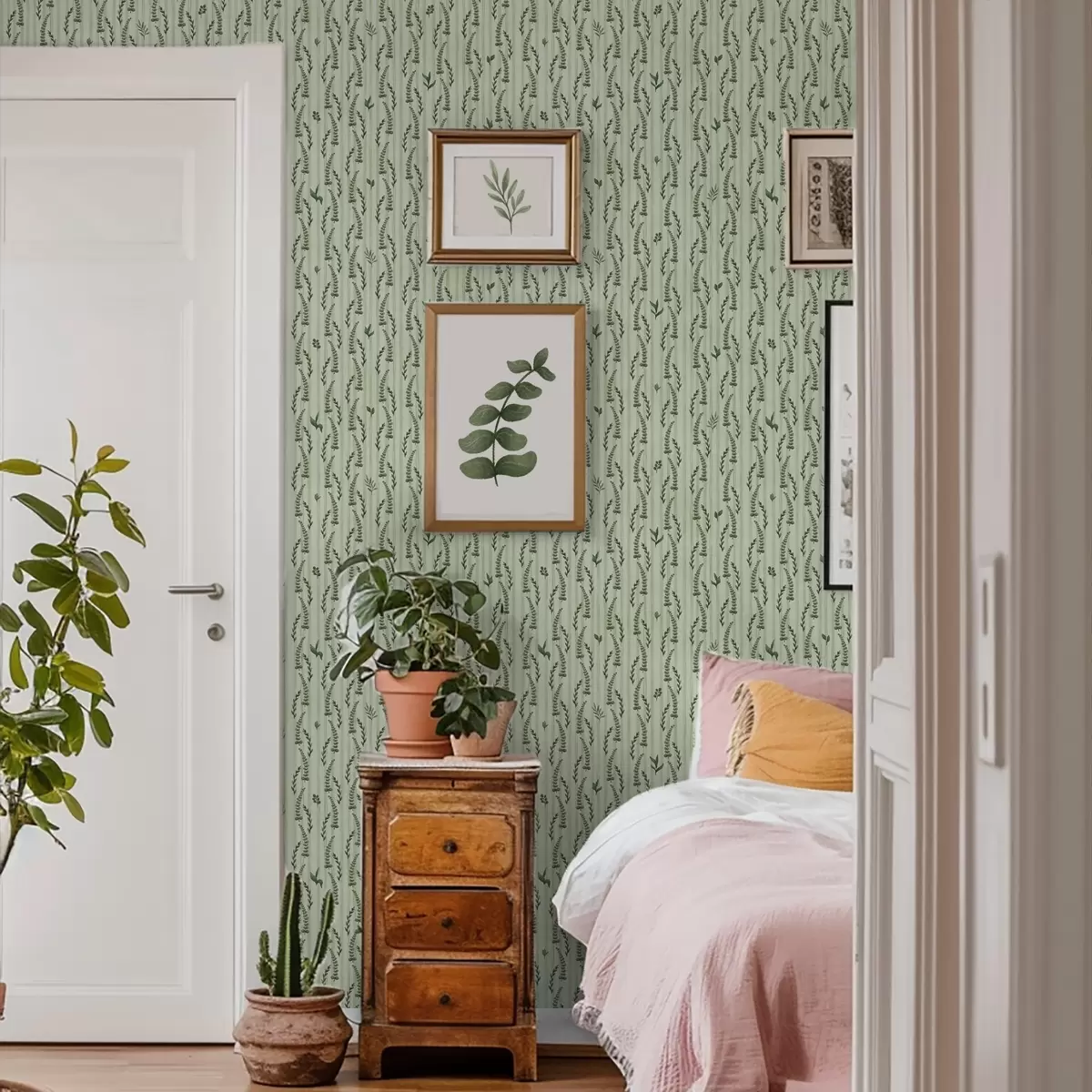 Tapeta Hustá zelená tráva a výhonky mäty s pruhmi Nr. a00819