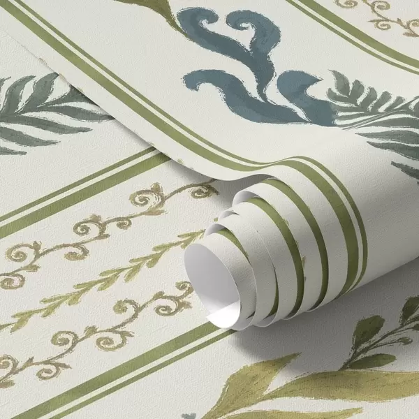 Tapety Pruhy so špirálovým ornamentom a veľkými vetvami v zelených odtieňoch a00823