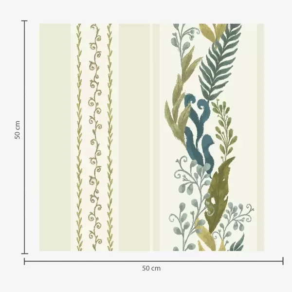 Tapeta Široké pruhy s maliarskymi vetvičkami v modro-olivových odtieňoch Nr. a00825