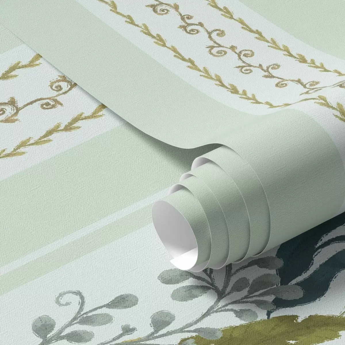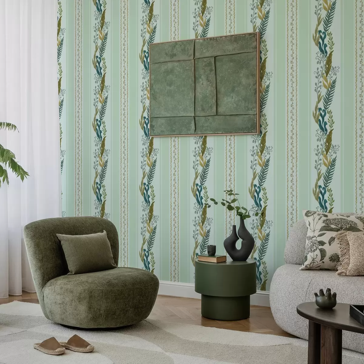 Tapeta Široké pruhy s maliarskymi vetvičkami na jemnej mäte Nr. a00825v1