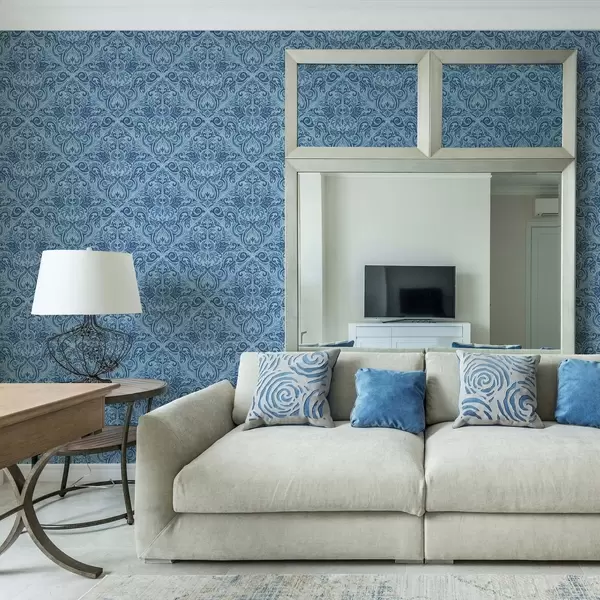 Tapeta Damašek v chladných modrých odtieňoch, silnejší kontrast Nr. a00826v2