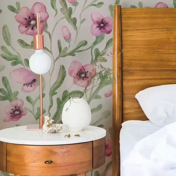 Tapeta Jemné ružové maky s listami v akvarelovej technike Nr. a00830