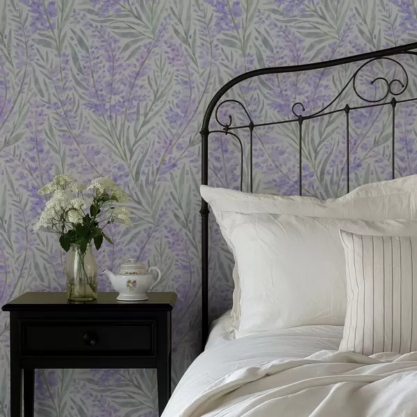Tapeta Levanduľové vetvičky v fialových odtieňoch na svetlom pozadí Nr. a00835