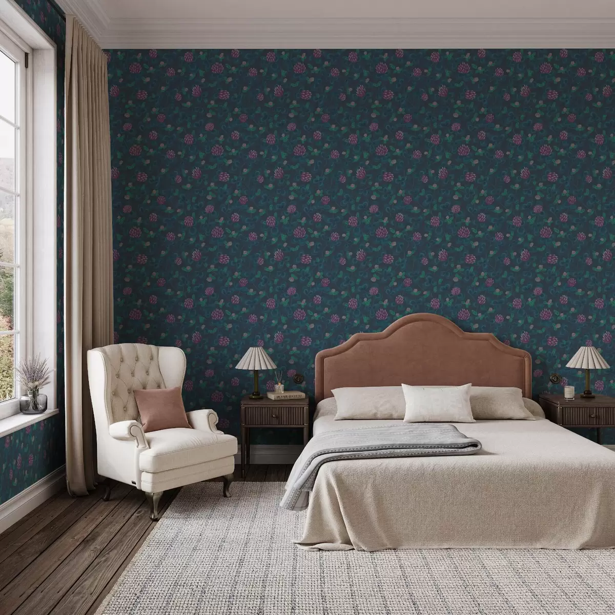 Tapeta Ďatelina s fialovými kvetmi na tmavomodrom pozadí Nr. a00836