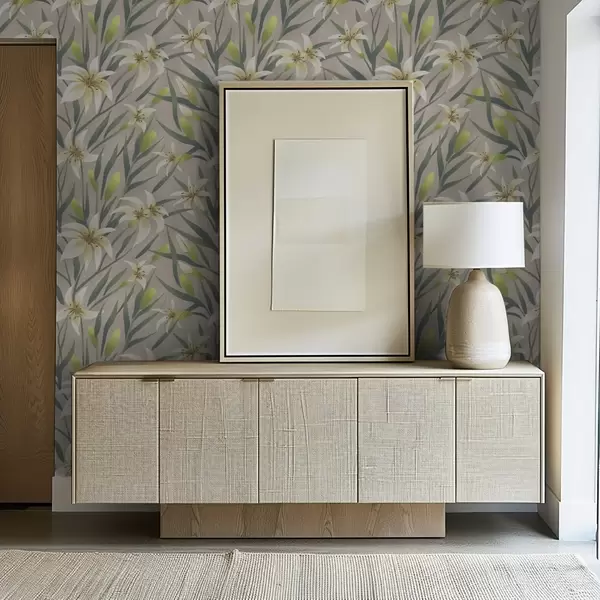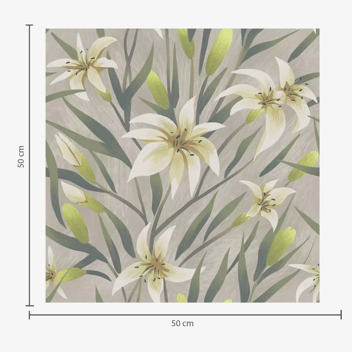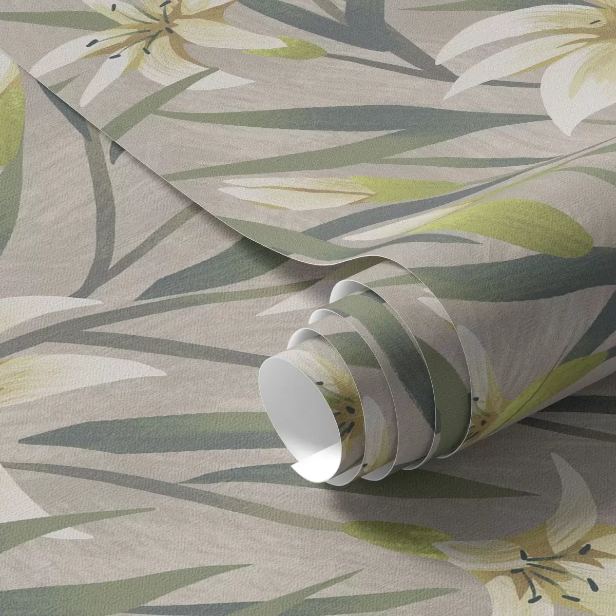 Tapeta Krémové ľalie s listami na šedo-béžovom pozadí Nr. a00837