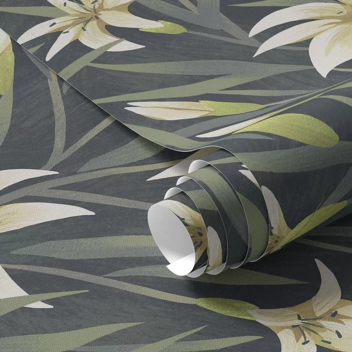 Tapeta Krémové ľalie s listami na tmavom pozadí Nr. a00837v1