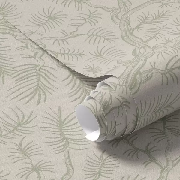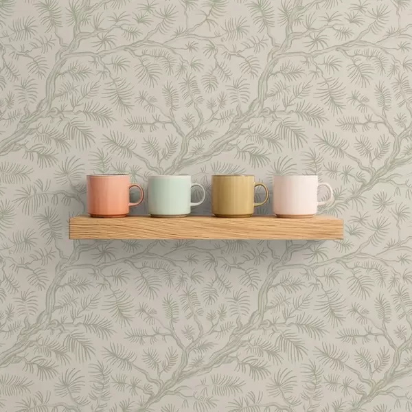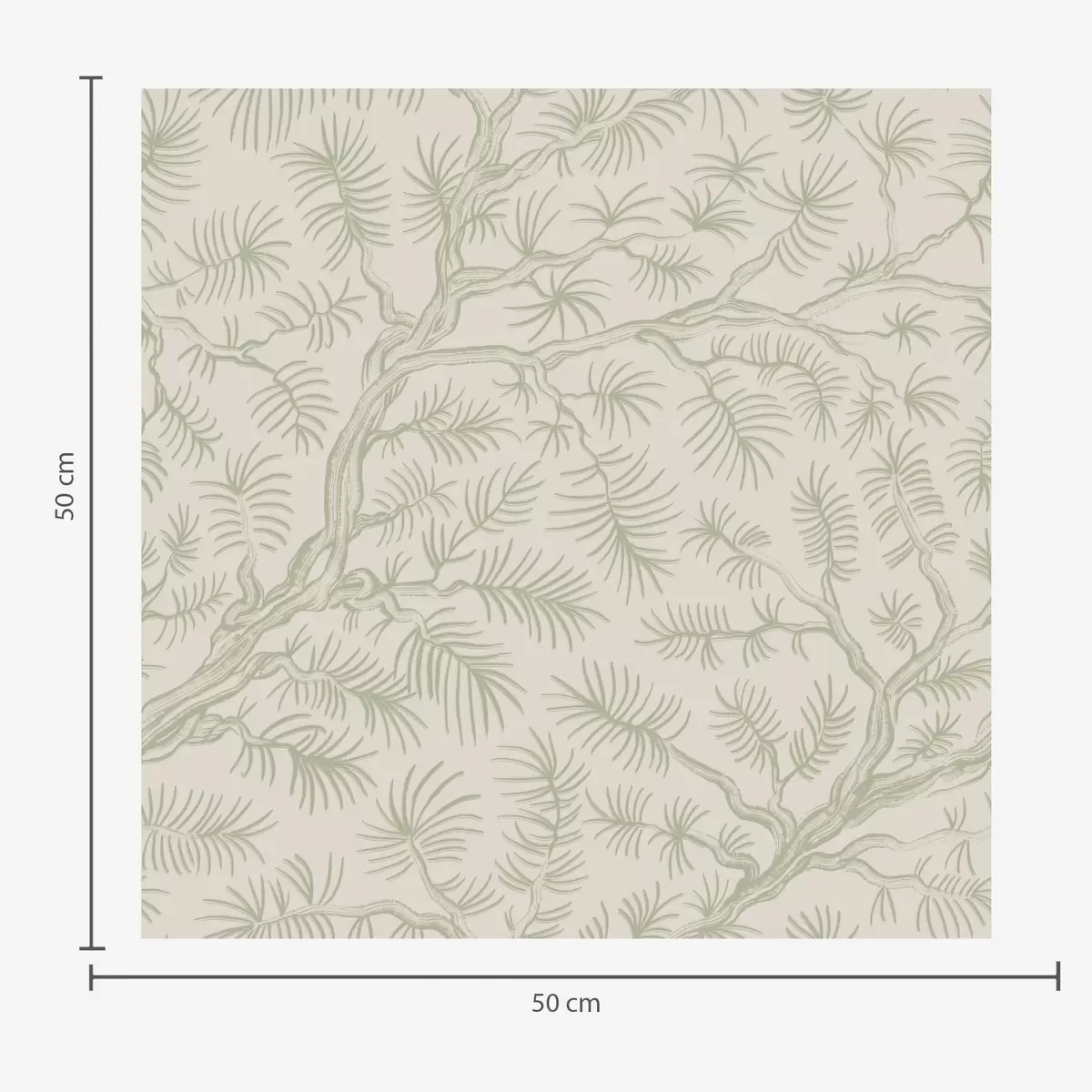 Tapeta Borovicové vetvy v svetlozelených odtieňoch na béžovom pozadí Nr. a00838v1