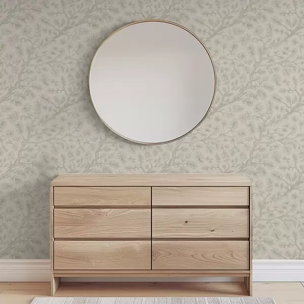 Tapeta Borovicové vetvy v svetlozelených odtieňoch na béžovom pozadí Nr. a00838v1