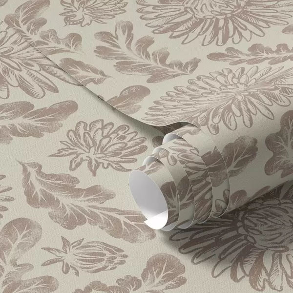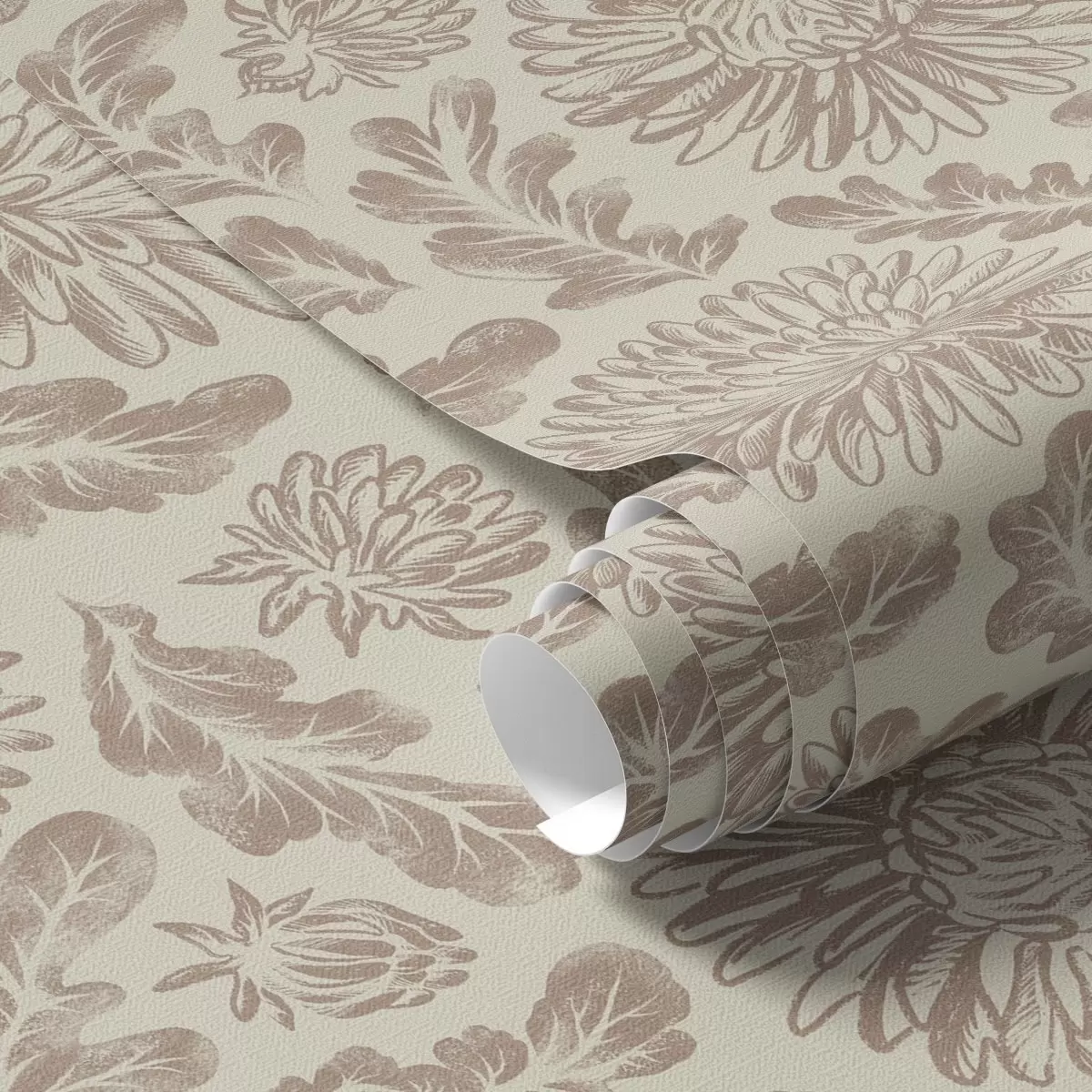 Tapeta Chryzantémy a dubové listy v jemnej béžovo-hnedej farbe Nr. a00840