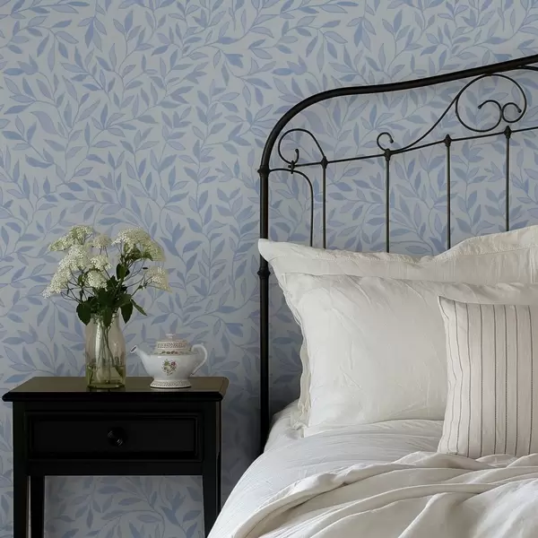 Tapeta Modré vetvičky s lístkami na svetlo modrom pozadí Nr. a00842