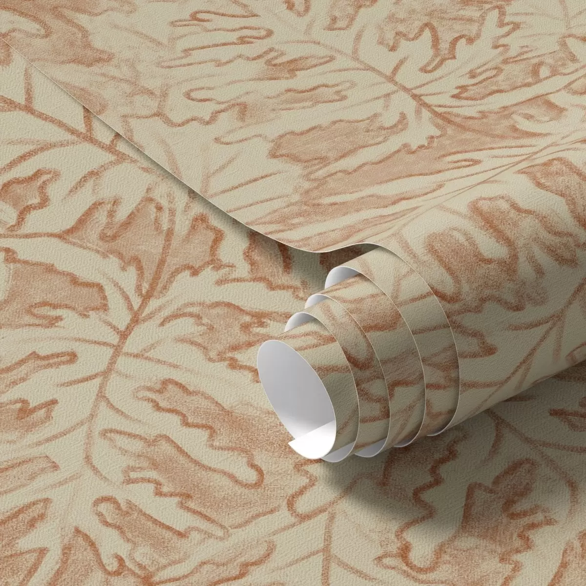 Tapeta Veľké dubové listy v terakote na smotanovej farbe Nr. a00846