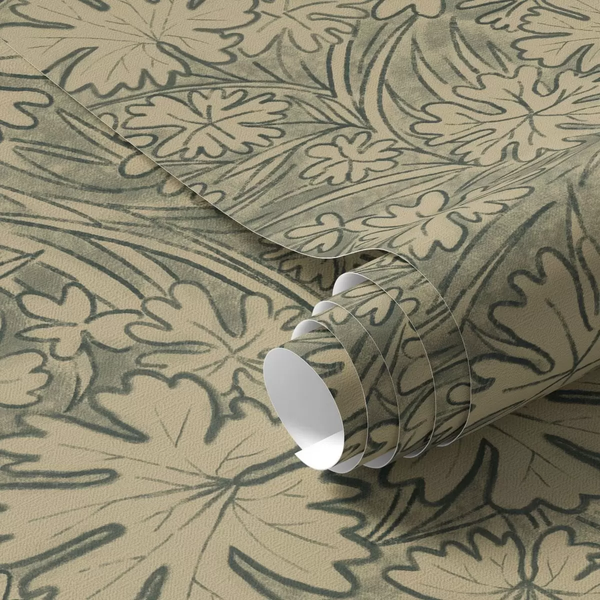 Tapeta Lístie a tráva v odtieňoch šedej a olivovej farby Nr. a00847v1