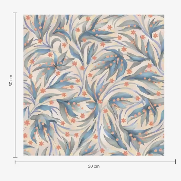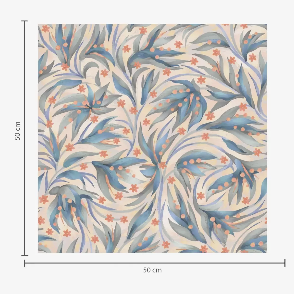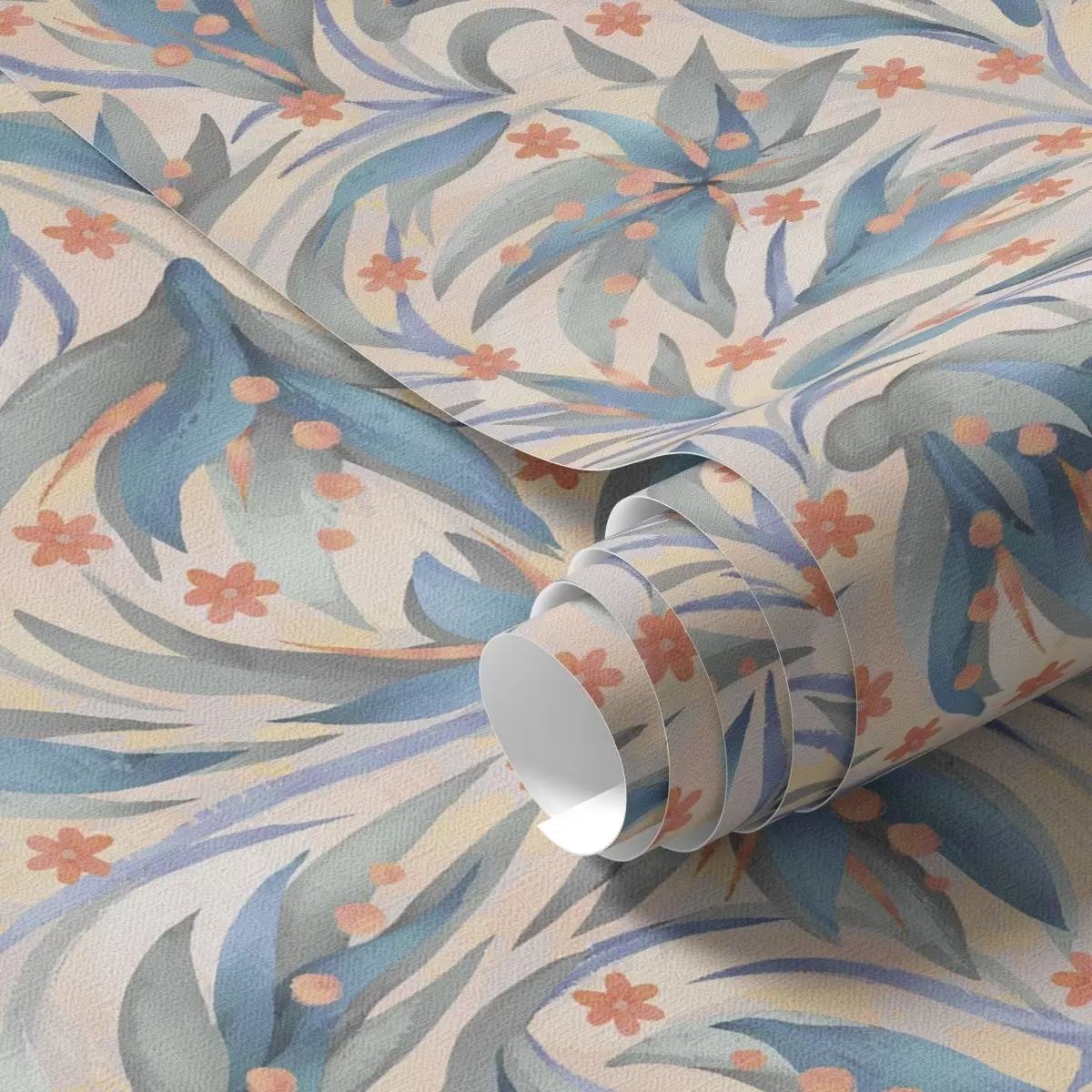 Tapeta Abstraktné modré lístie s koralovými kvetmi Nr. a00852