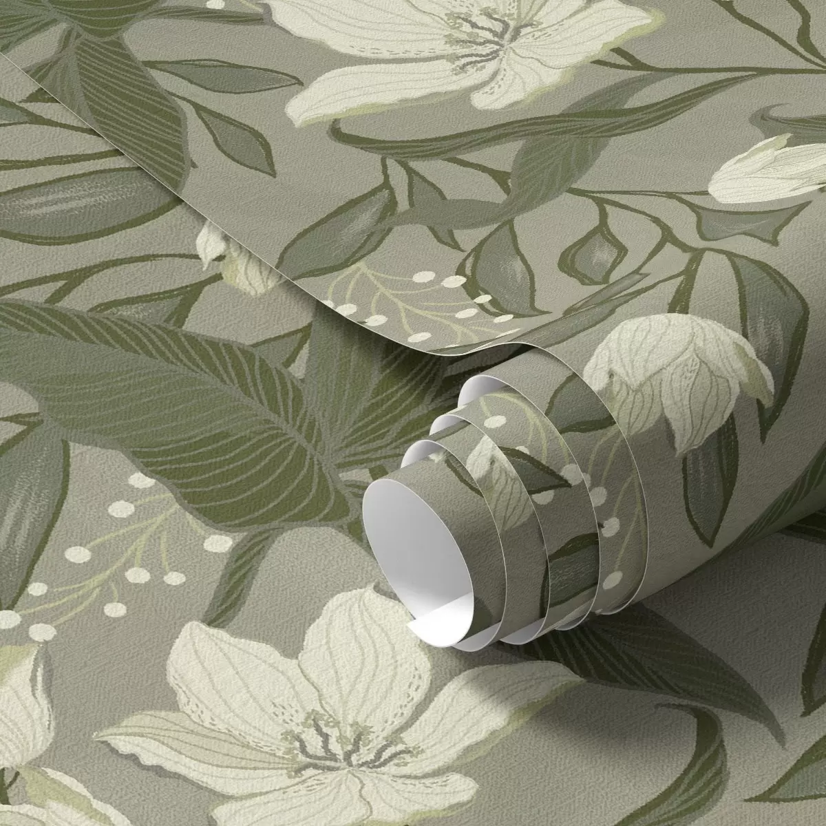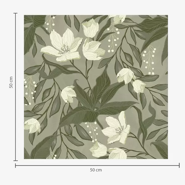Tapeta Bledé ľalie a lístie na šedo-olivovom pozadí Nr. a00854