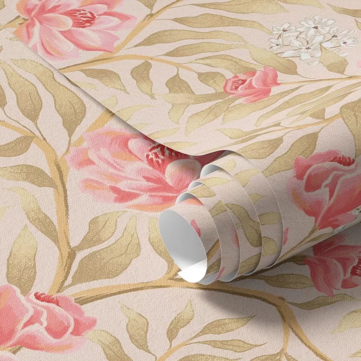 Tapeta Ružové kvety, biele kvety a okrové listy Nr. a00855